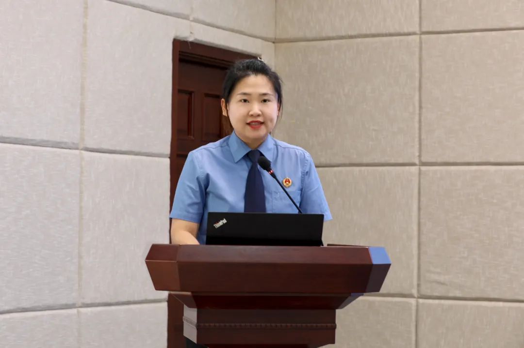 消防安全培训会上,溪湖区消防救援大队消防指战员马煜博通过图文展示与现场讲解,系统介绍常见火灾成因、报警要点、初期火灾扑救方法以及不同情境下的逃生自救技巧,并对消防设备的正确使用进行细致说明,有效提升检察人员的消防知识水平和风险辨别能力。溪湖区人民检察院党组副书记、分管日常工作的副检察长李新结合工作实际,提醒全体检察人员要牢固树立安全意识,加强隐患排查,提升应急能力,切实做到“人人讲安全、处处防风险”。