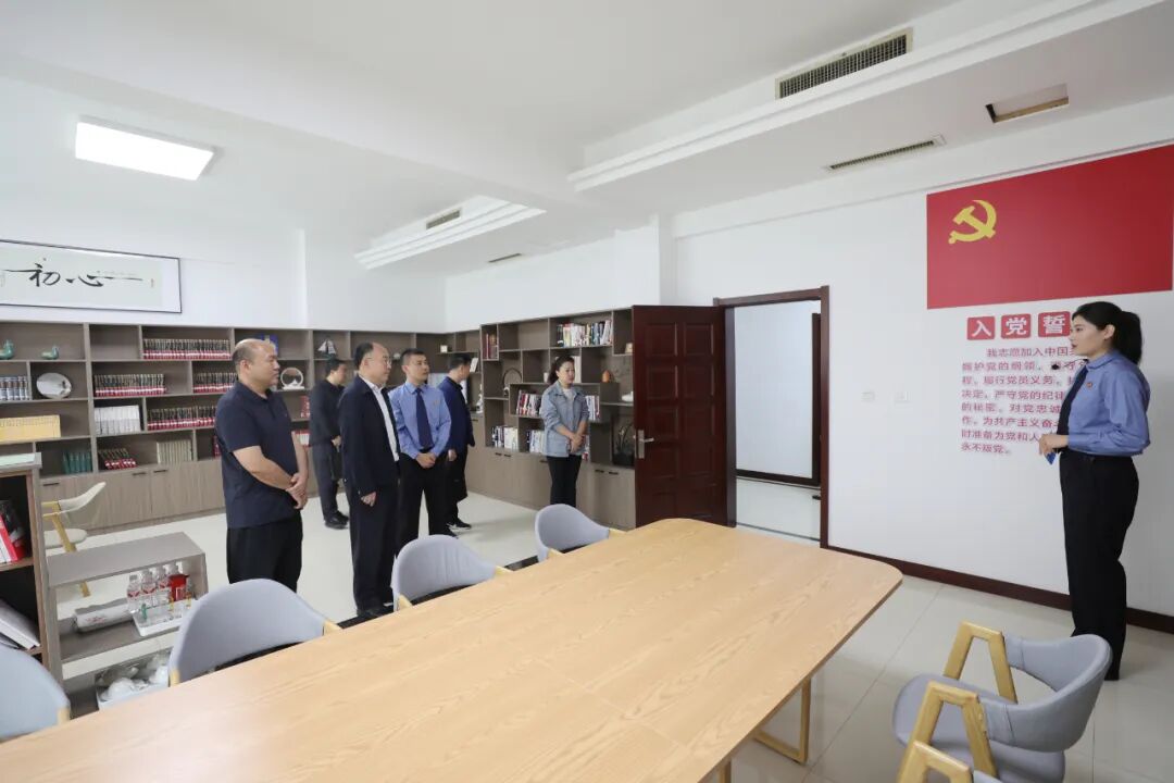 调研组走进“党建+N”多功能融合阵地,该阵地集党建活动、学习研讨、业务交流与工间休憩于一体,并贴心设置干警子女寒暑期看护区。党旗与誓词墙强化红色烙印,阅览区与休息区营造温馨氛围,充分践行了本溪检察“工作追求卓越,团队充满活力、身心倍感愉悦”的文化理念,是党建活力与日常服务深度融合的“干警之家”。